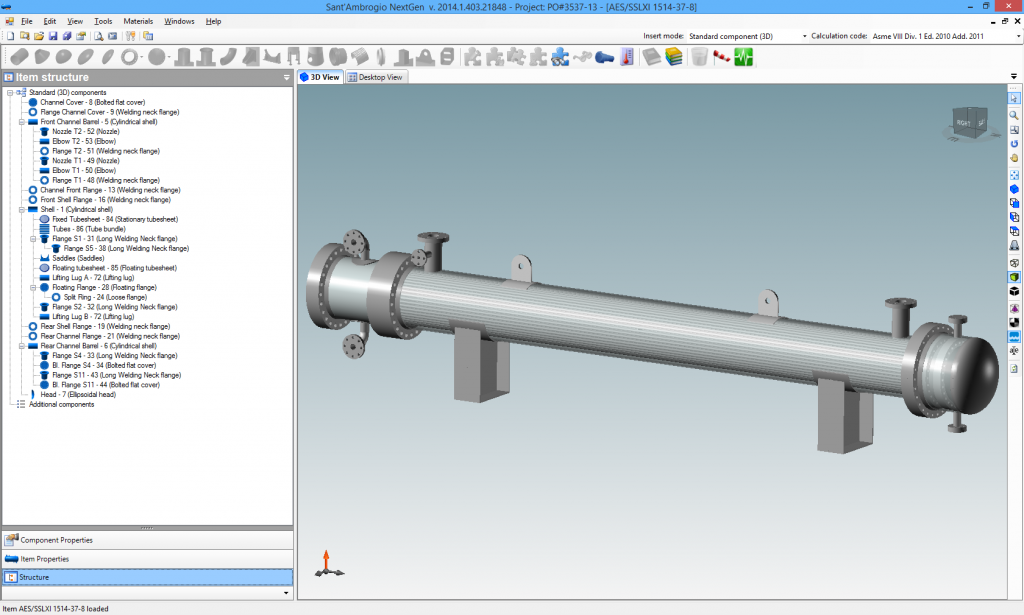 Sant’Ambrogio NextGen is the new software for mechanical design and verification of pressure vessels and heat exchangers in accordance with ASME VIII Division 1, Division 2, EN 13445, EN 13480 and AD 2000, with options for calculating in wind and earthquake conditions according to NTC, Eurocodes, UBC, ASCE, modules for the calculation of loads on nozzles according to WRC 107/297/537, tubesheets to TEMA IX and to perform structural analysis of vertical columns. The software also includes the database of the most common standard components used in pressure vessels, like ASME/ANSI B16, B31, EN 1092-1, EN 1759-1, etc.
